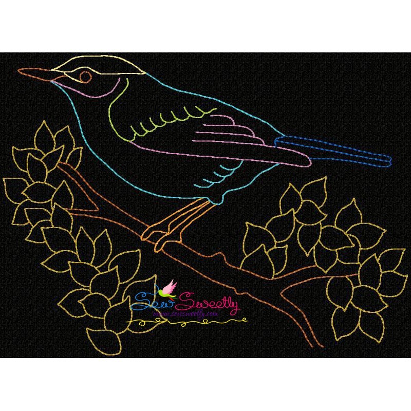 Colorful Vintage Bird-5 Embroidery Design Pattern.