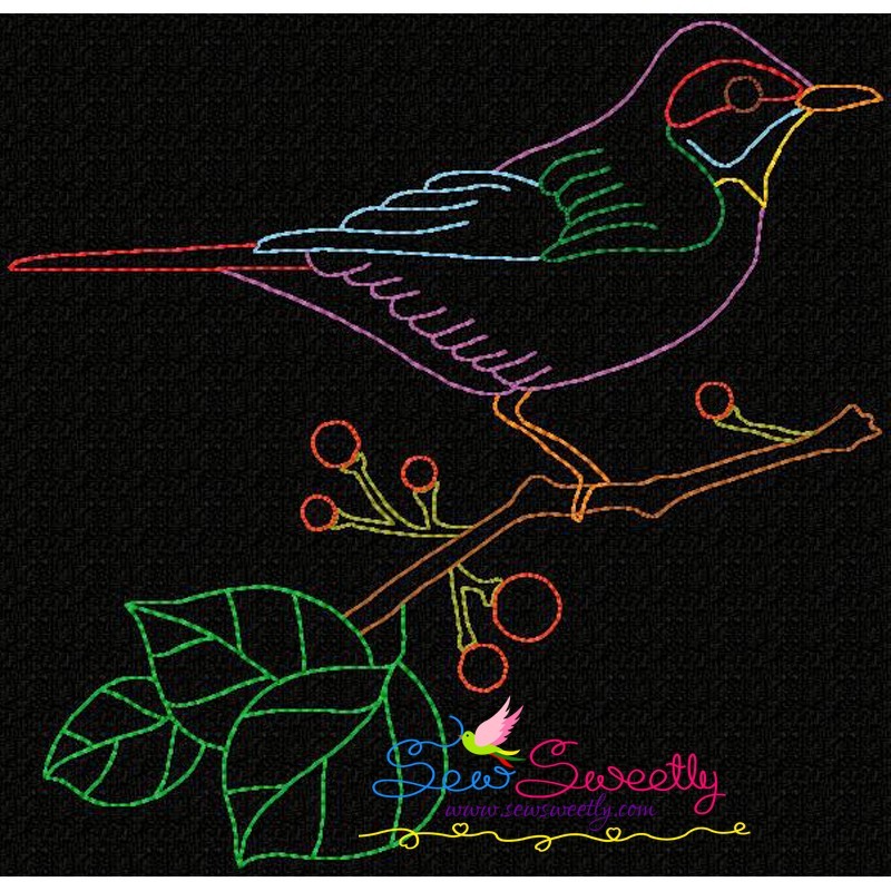 Colorful Vintage Bird-7 Embroidery Design Pattern.