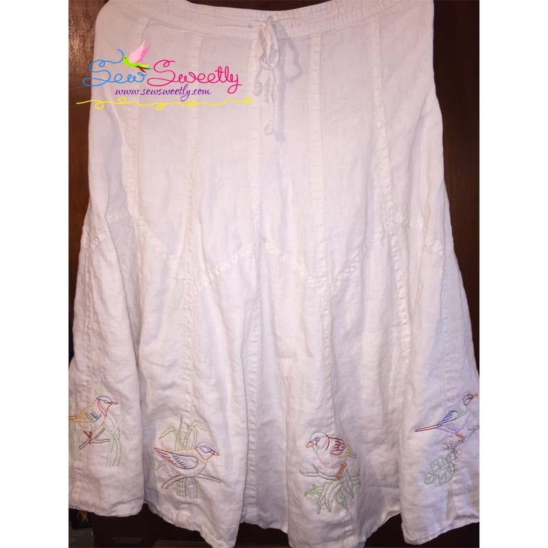 This Set Includes 10 Vintage Colorful Birds In Redwork Stitch.