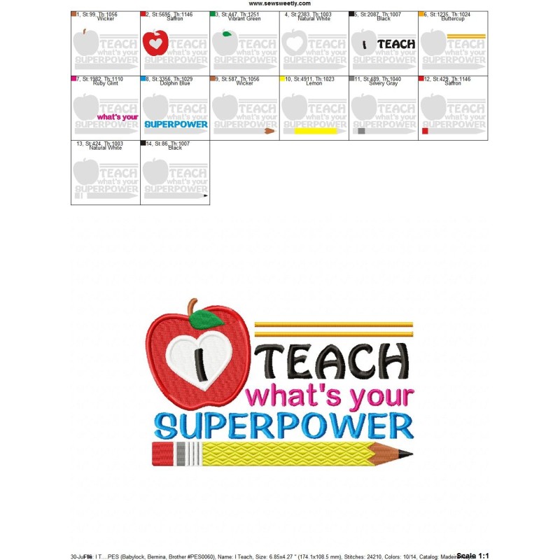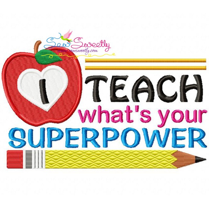 I Teach What's Your Super Power Embroidery Design Pattern.