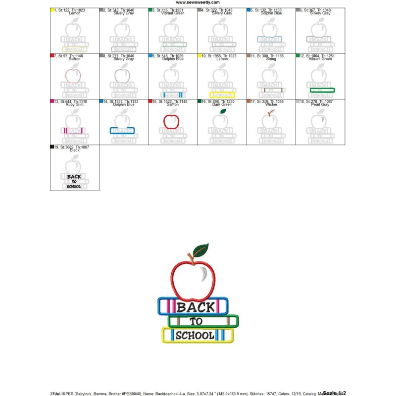 Back To School Books And Apple Applique Design Pattern For Back To School Machine Embroidery Projects.