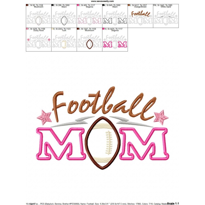 Football Mom Applique Design Pattern For Computerized Embroidery Machines.