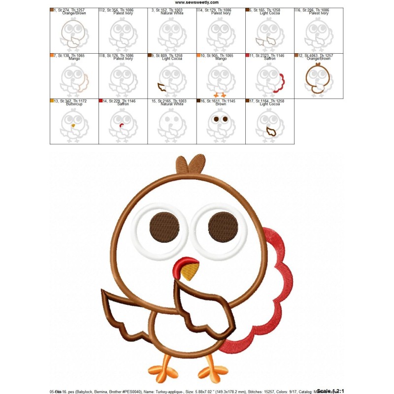 Turkey Applique Design Pattern For Fall And Thanksgiving Machine Embroidery Projects.