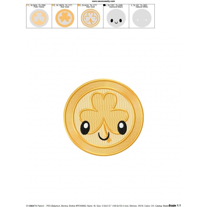St.Patrick's Day Coin Kawaii Embroidery Design Pattern