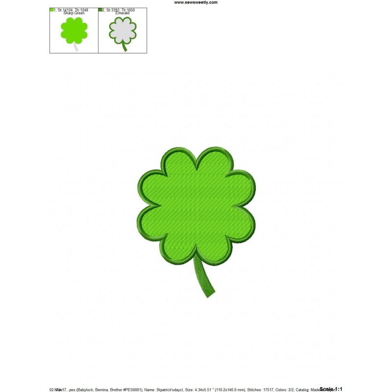 St.Patrick's Day Clover Embroidery Design Pattern.