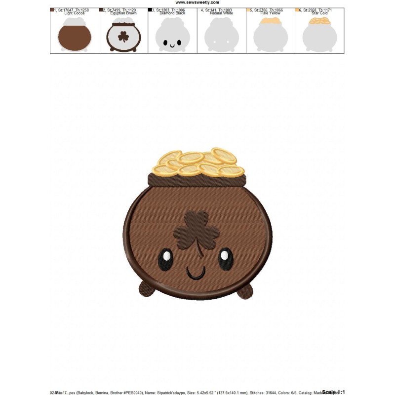 St.Patrick's Day Pot of Gold Kawaii Applique Design Pattern-1