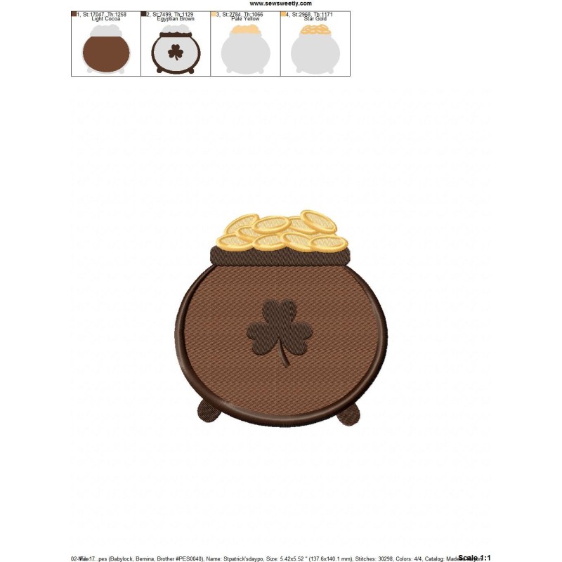 St.Patrick's Day Pot of Gold Embroidery Design Pattern