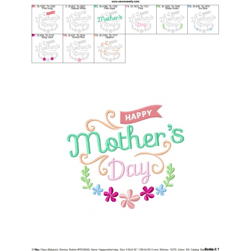 This Embroidery Design Set Includes 8 Beautiful Mother's Day Machine Embroidery Designs.