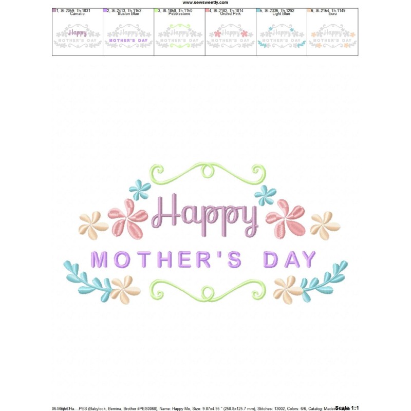 Included Design Sizes For Embroidery Machine: 4X4, 5X7 and 6X10.