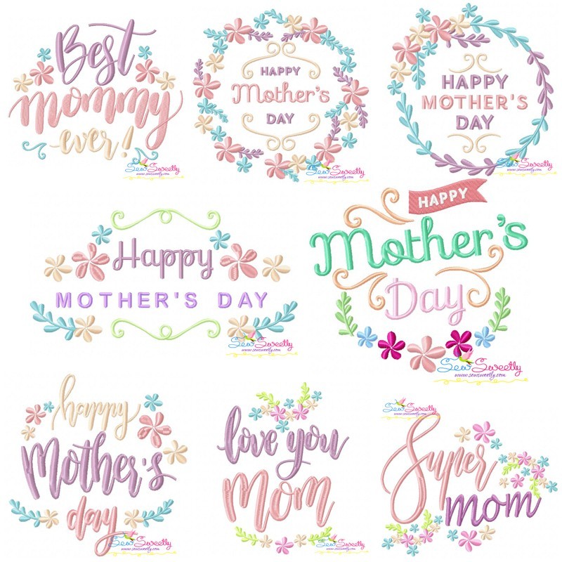 This Embroidery Design Set Includes 8 Beautiful Mother's Day Machine Embroidery Designs.