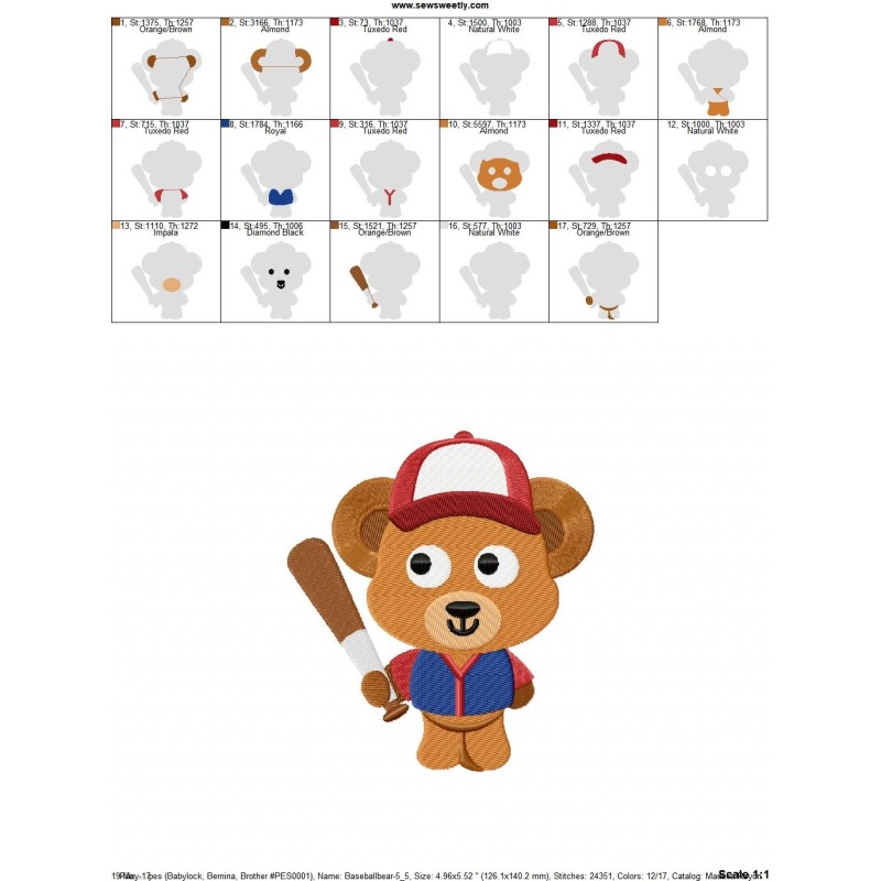 Baseball Bear Embroidery Design Pattern.