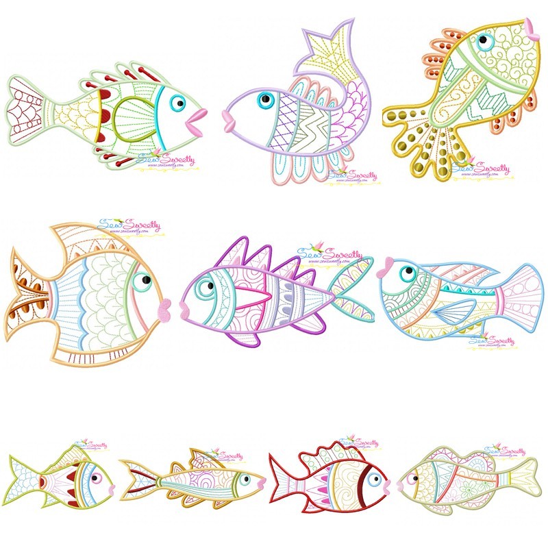 This Embroidery Design Set Includes 10 Colorful Fishes.