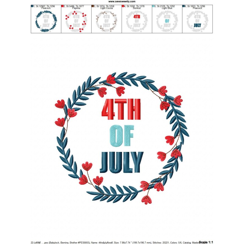 4th of July Floral Frame-3 Patriotic Embroidery Design Pattern-1