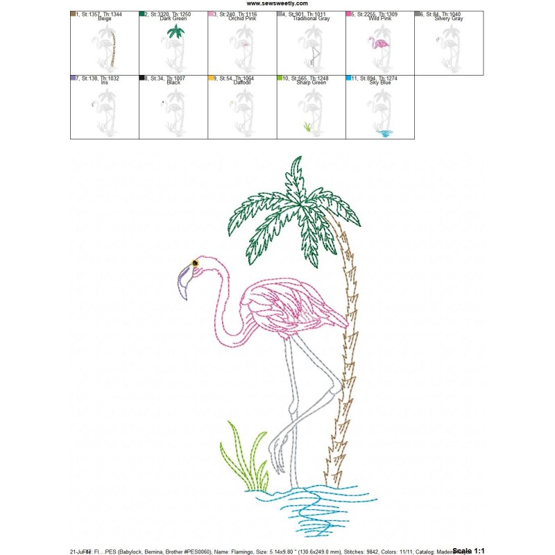 Vintage Stitch Flamingo-7 Embroidery Design Pattern-1