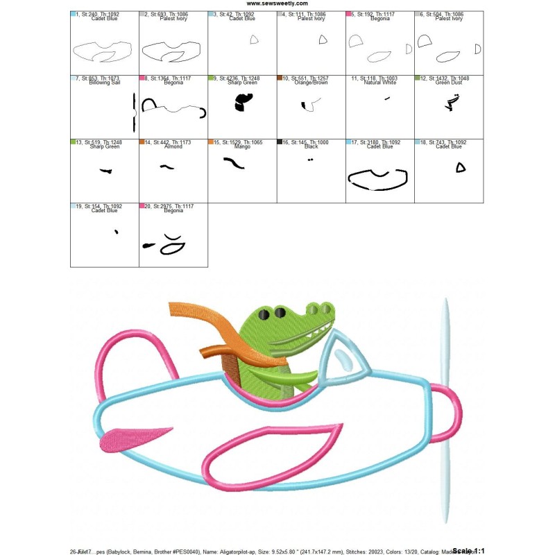 10 Pilot Animals Embroidery Designs In Both Applique And Filled Versions.