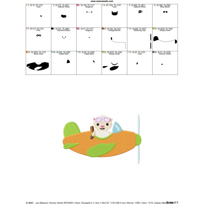 10 Pilot Animals Embroidery Designs In Both Applique And Filled Versions.