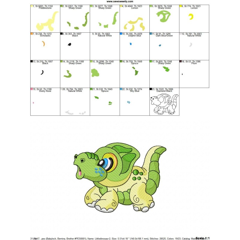 Baby Dinosaur-2 Embroidery Design Pattern-1