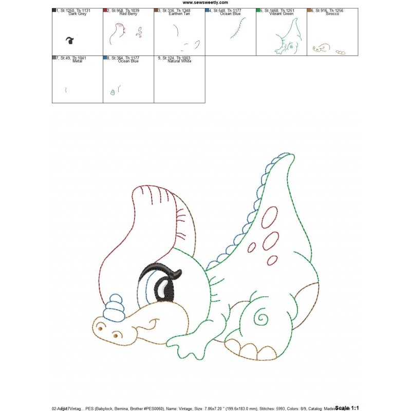 This Embroidery Design Set Includes 10 Cute Vintage Stitch Baby Dinosaurs Embroidery Designs.