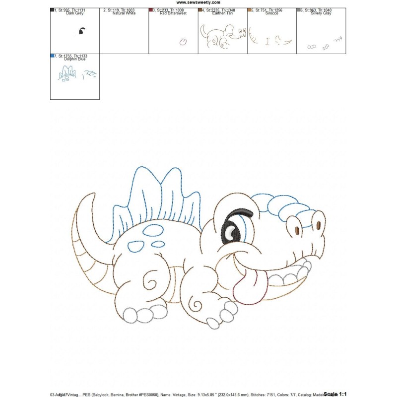 Vintage Stitch Baby Dinosaur-7 Embroidery Design Pattern