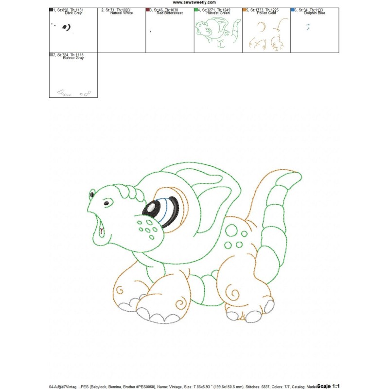 Vintage Stitch Baby Dinosaur-2 Embroidery Design Pattern-1
