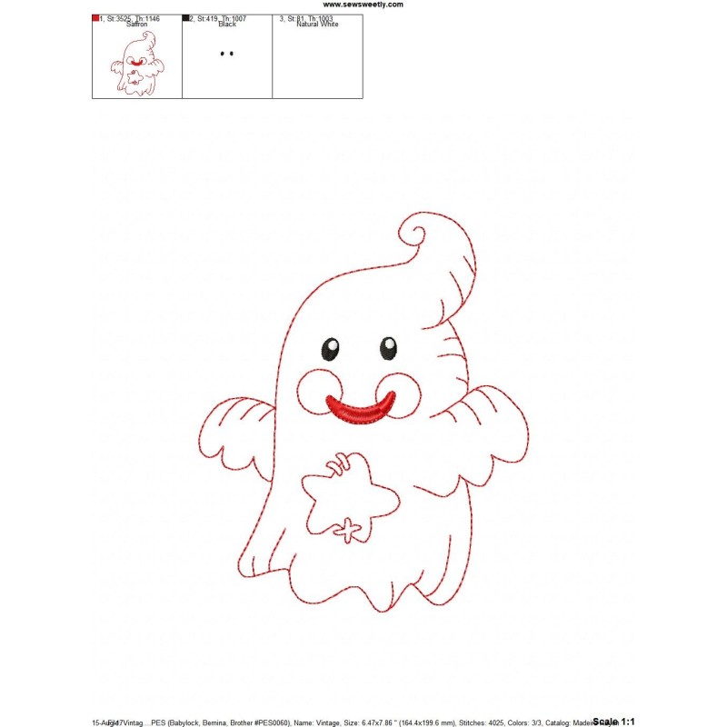 Vintage Stitch Little Ghost-2 Embroidery Design Pattern-1
