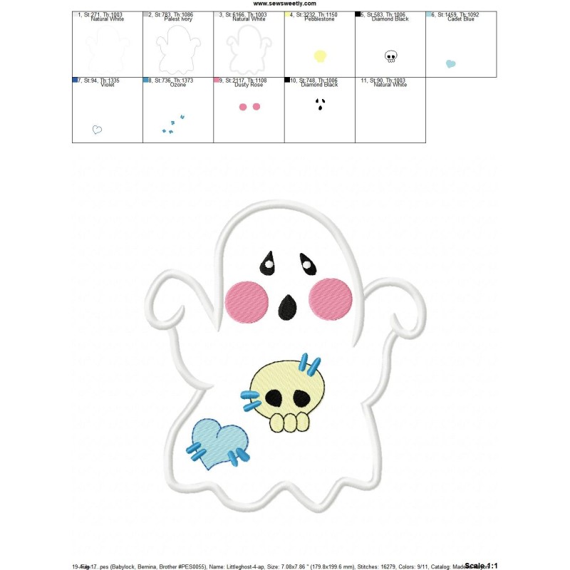 This Embroidery Design Set Includes 10 Redwork Halloween Little Ghosts Embroidery Designs.
