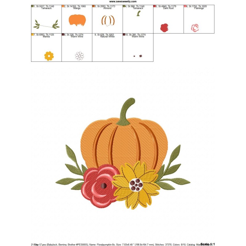 Floral Pumpkin Embroidery Design Pattern.
