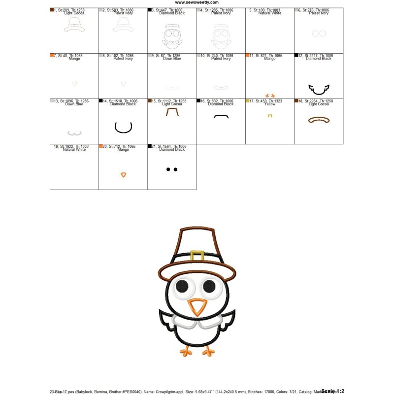 Crow Pilgrim Applique Design Pattern For Halloween Machine Embroidery Projects.