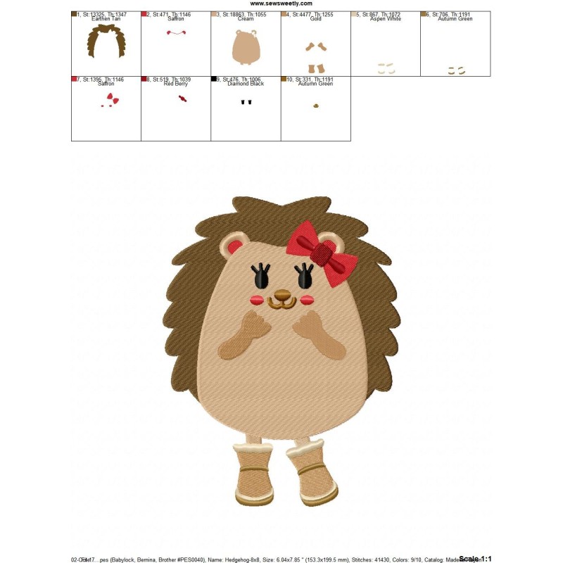 Fall Hedgehogs Girl Fill Embroidery Design Bundle