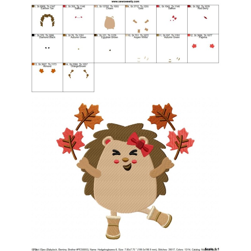 Hedgehog Girl Leaves Embroidery Design Pattern