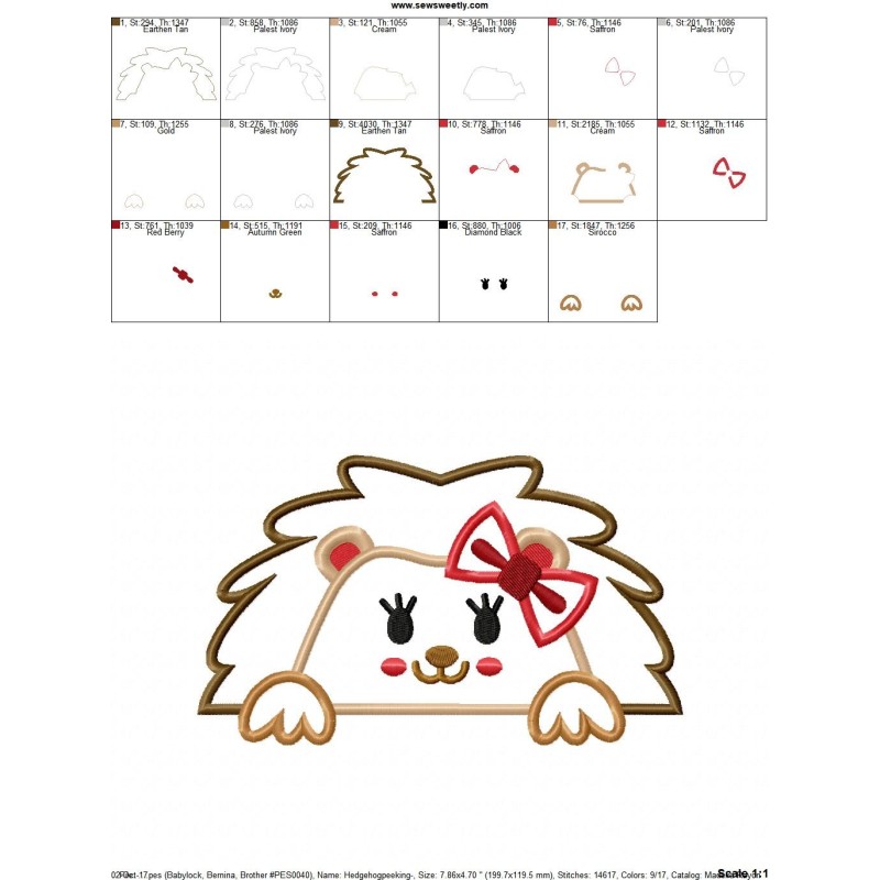 Hedgehog Girl Peeking Applique Design Pattern-1
