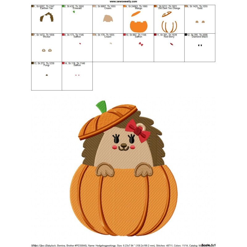 Hedgehog Girl Peeking Pumpkin Embroidery Design Pattern-1