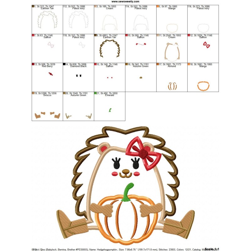 Hedgehog Girl Pumpkin Applique Design Pattern-1