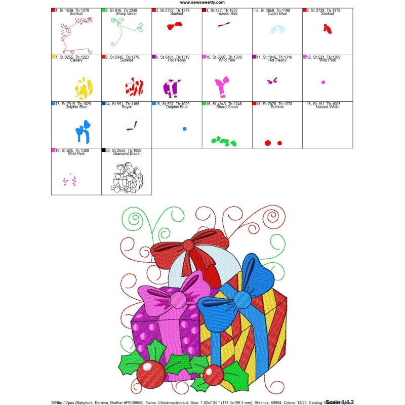 Christmas Block- Gifts Embroidery Design Pattern.