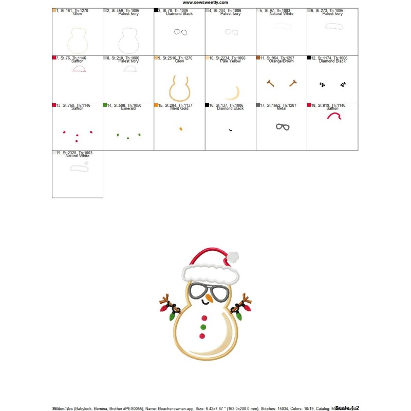 Christmas Beach Snowman Applique Design Pattern For Christmas.