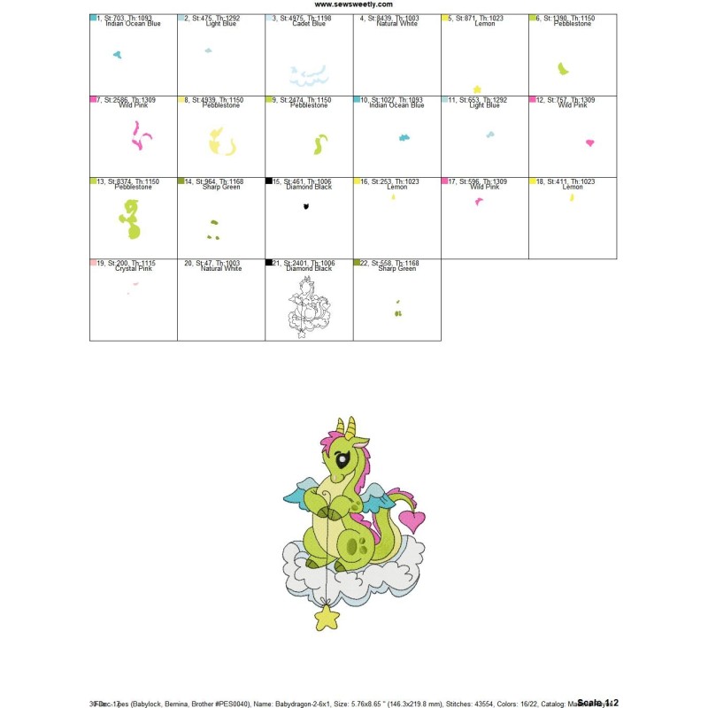 Baby Dragon-2 Embroidery Design Pattern