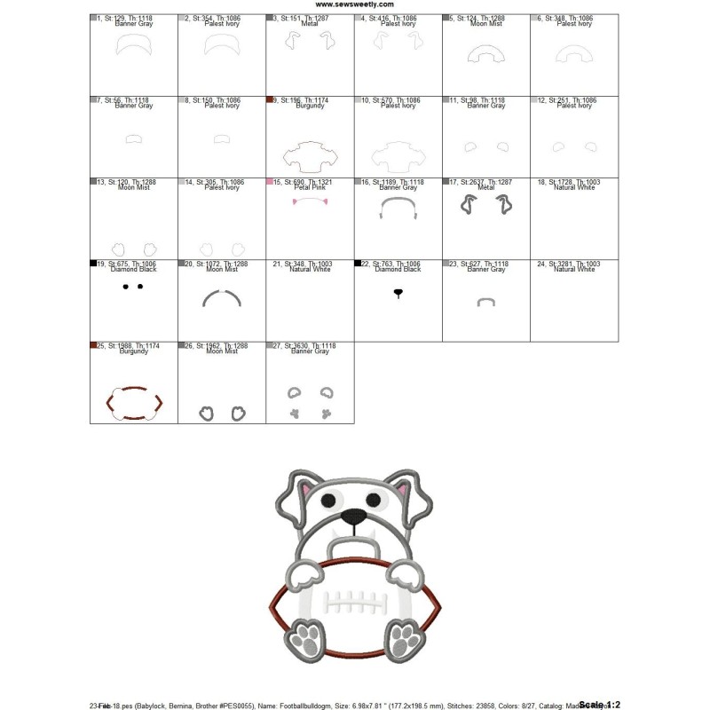 Football Bulldog Mascot Applique Design Pattern