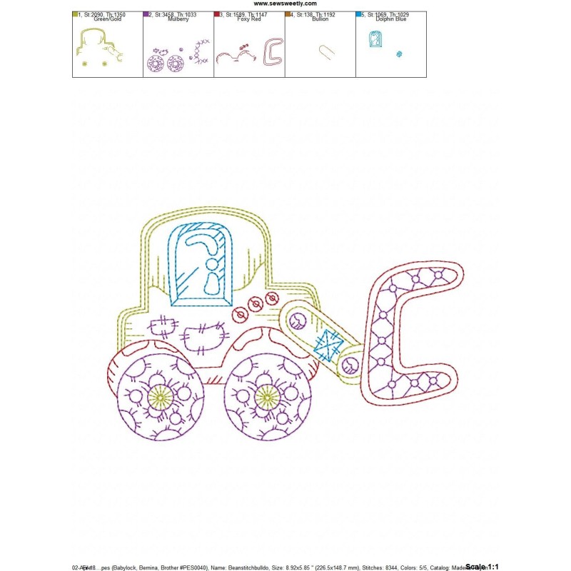 Vintage Bean Stitch Bulldozer Machine Embroidery Design Pattern.