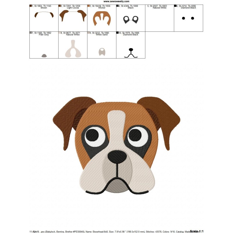 5 dog faces filled embroidery designs.