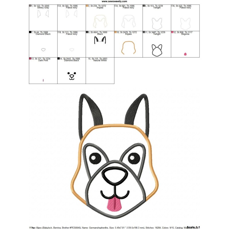 German Shepherd Dog Head Applique Design Pattern