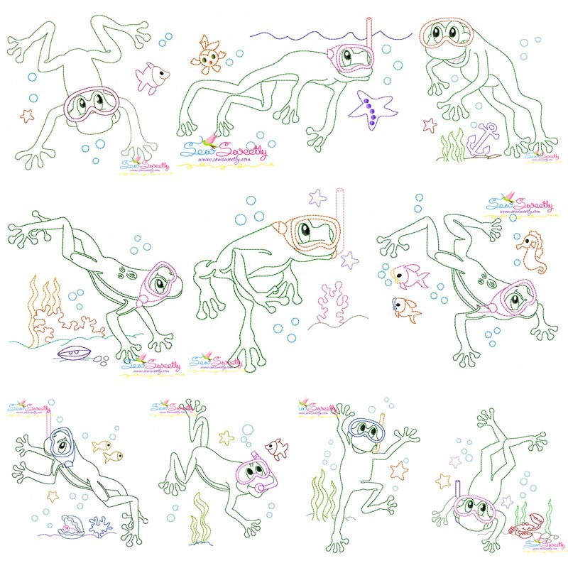 This Embroidery Design Bundle Includes 10 Beautiful Triple Bean Redwork Underwater Machine Embroidery Designs.