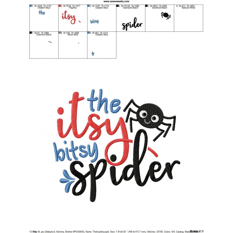 The Itsy Bitsy Spider Nursery Rhyme Machine Embroidery Design Pattern For Kids.