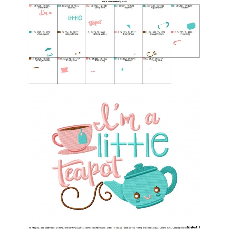 I'm a Little Teapot Nursery Rhyme Machine Embroidery Design Pattern For Kids.