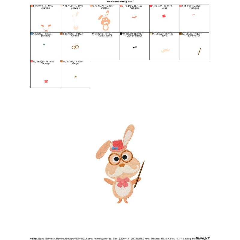 Animal Student Bunny Machine Embroidery Design Pattern For Back To School Projects.