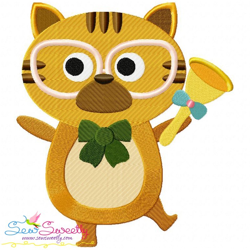 Animal Student Cat Machine Embroidery Design Pattern For Back To School Projects.