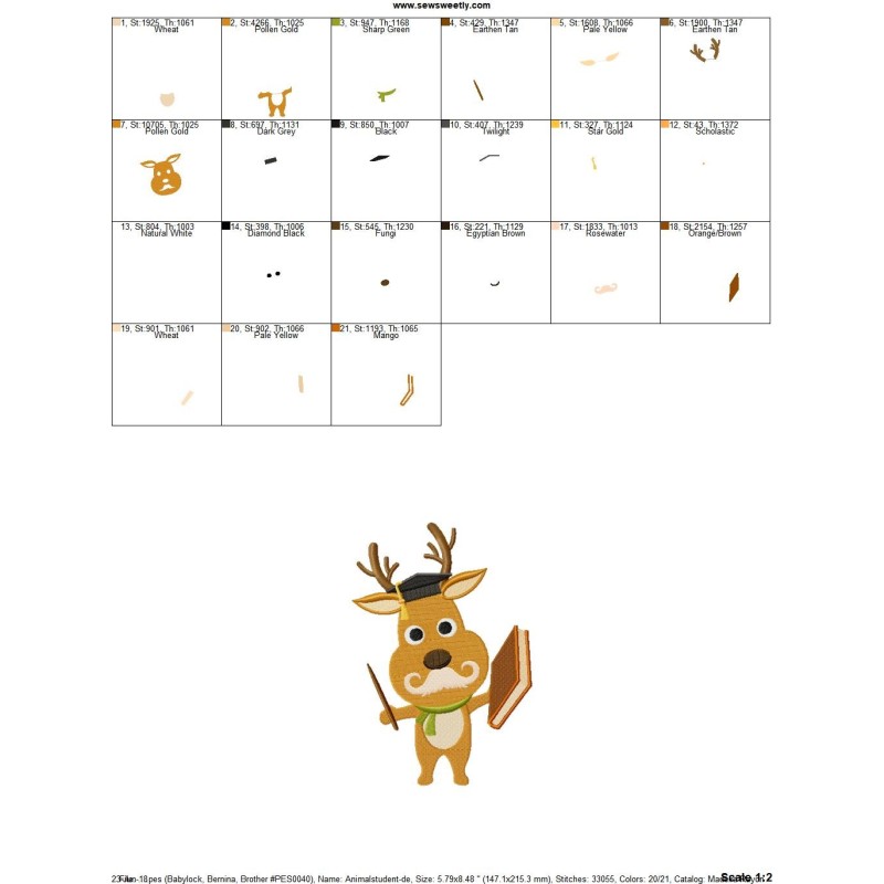 Animal Student Deer Machine Embroidery Design Pattern For Back To School Projects.