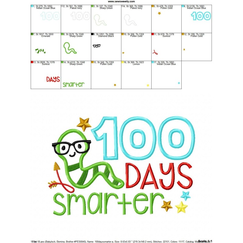 100 Days Smarter Applique Embroidery Design Pattern For Back To School Embroidery Projects.
