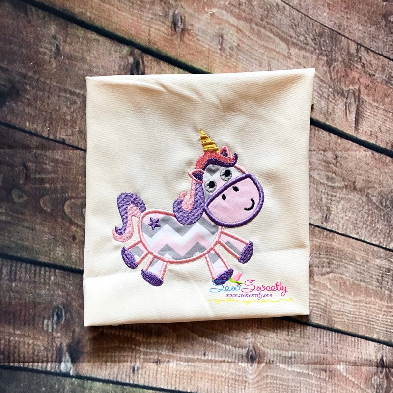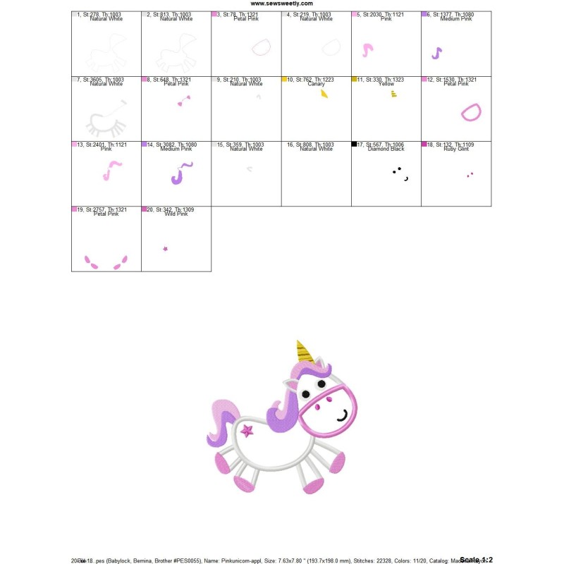 Pink Unicorn Machine Embroidery Applique Design Pattern.