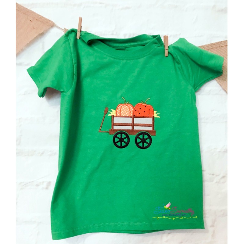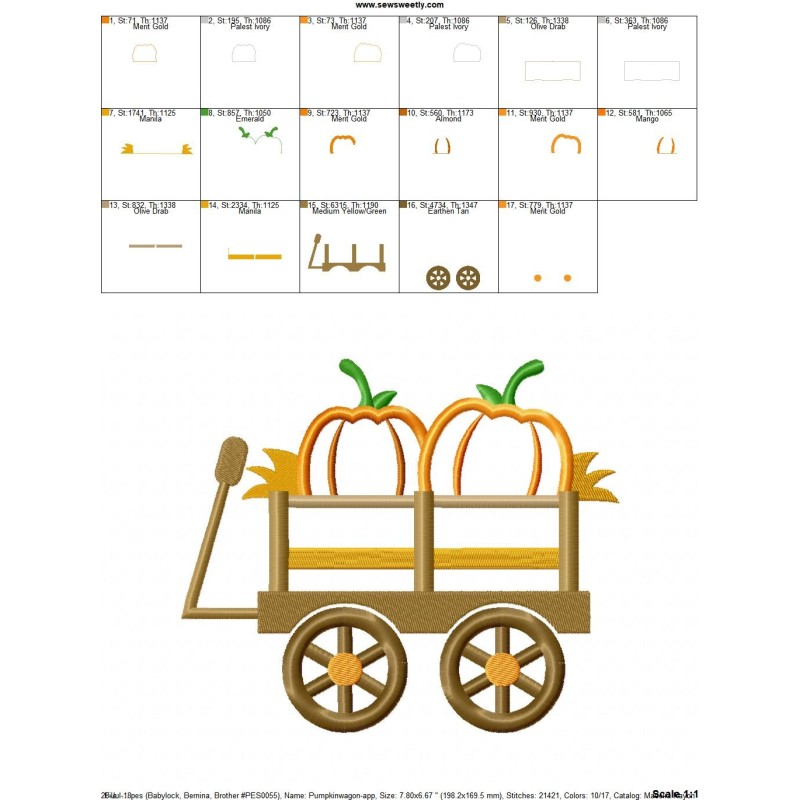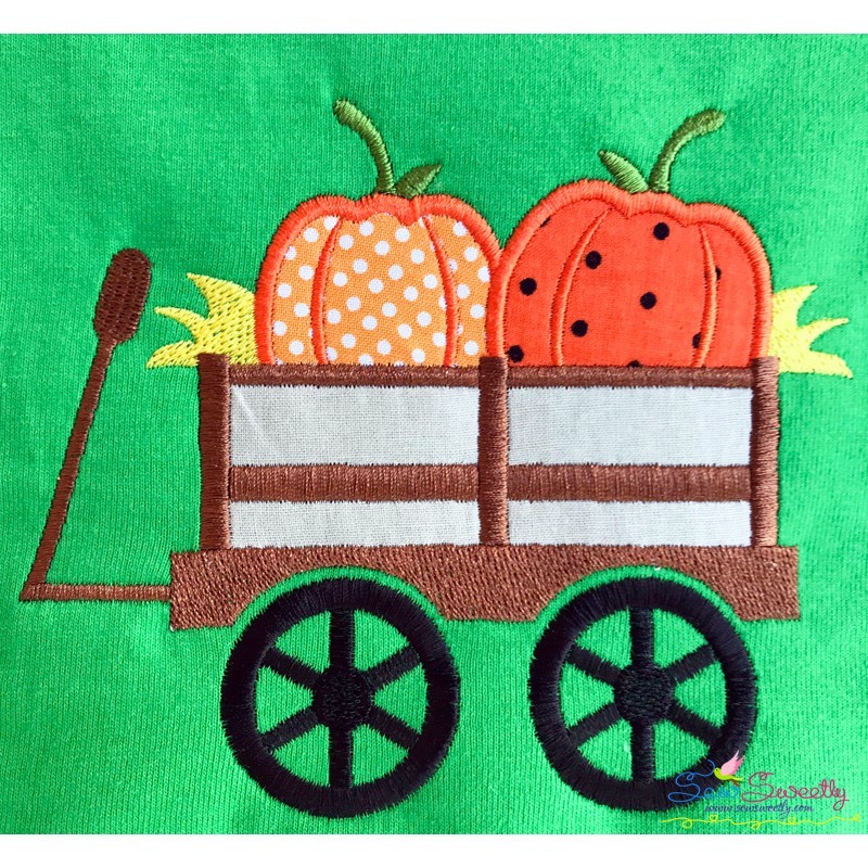 Pumpkin Wagon Machine Embroidery Applique Design Pattern For Fall And Thanksgiving.