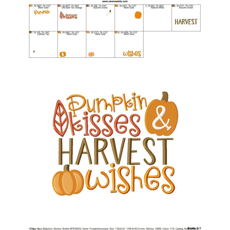 Pumpkin Kisses And Harvest Wishes-2 Lettering Embroidery Design Pattern-3
